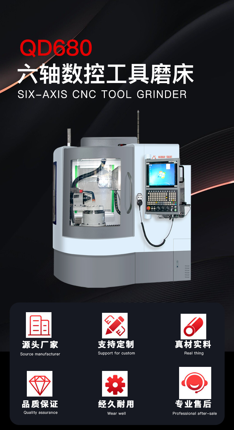 QD680是千島公司研發(fā)的六軸五聯(lián)動(dòng)數控工具磨床,是一款性能優(yōu)良的高精度刀具磨床,適用于生產(chǎn)或修磨小規格銑削類(lèi)刀具、鉆削類(lèi)刀具、成形刀具等。機床圓弧造型,人機界面友好,天然大理石構件,穩定好。