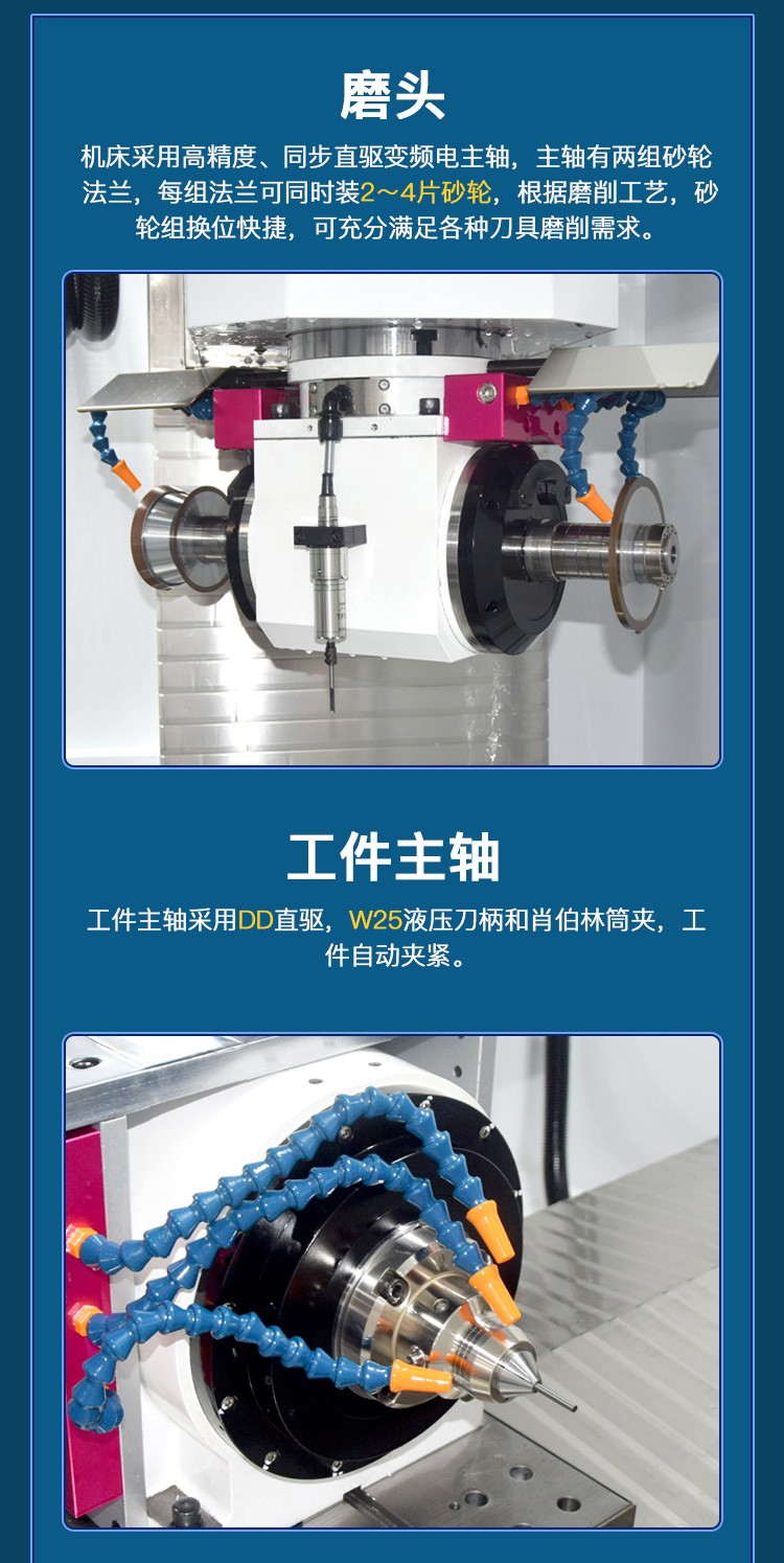 QD560是千島公司新研發(fā)的五軸五聯(lián)動(dòng)數控工具磨床,是一款高性?xún)r(jià)比刀具磨床,適用于生產(chǎn)或修磨各類(lèi)銑削類(lèi)刀具、鉆削類(lèi)刀具、成形刀具等。機床造型簡(jiǎn)潔,人機界面友好,天然大理石構件,穩定性好。