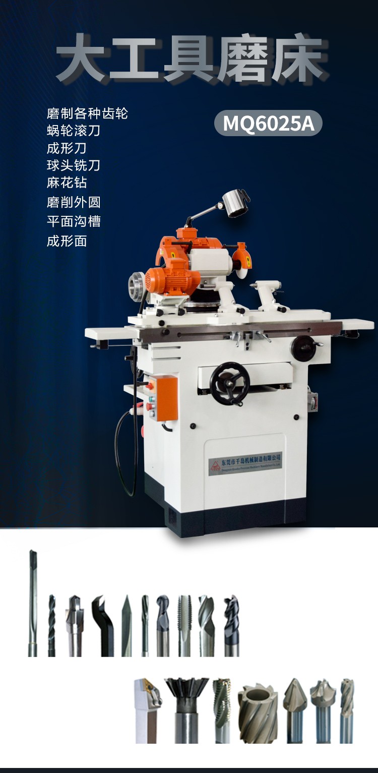 1、MQ6025A適用于刃磨高速鋼,硬質(zhì)合金或其他材料的刀具,同時(shí)也便于磨削外圓,平面溝槽和成形面等。搭配特殊附件,可以磨制各種齒輪,渦輪滾刀,成形刀,球頭銑刀,麻花鉆,墜鉸刀等。